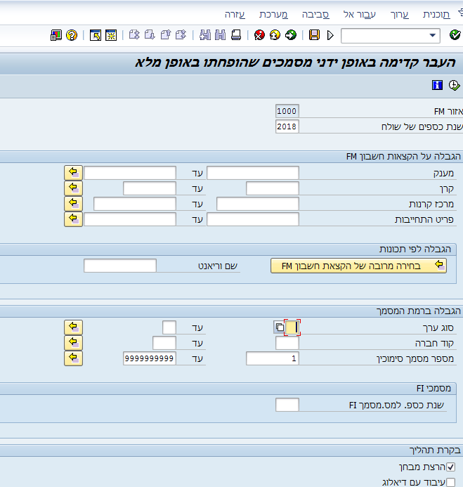 חשבונאות < ניהול סקטור ציבורי < ניהול קרנות < פונקציות נוספות < פעולות סגירה < התחייבויות / בפועל < העברת התחייבויות קדימה < העבר קדימה מסמכים FMJ2
