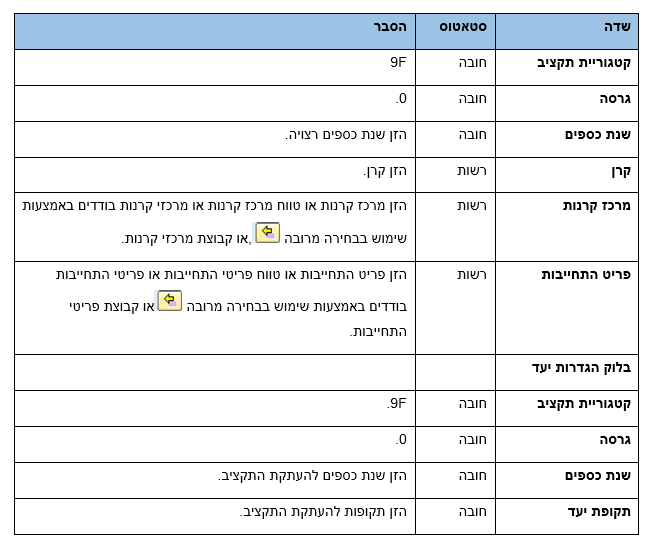 חשבונאות > ניהול סקטור ציבורי > ניהול קרנות > תקצוב > מערכת בקרת תקציבי - BCS > מסמכי הזנה > FMBB.