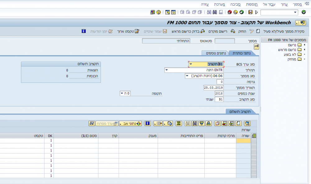 להזנת תקציב, הכנס לטרנזקציה, באמצעות הקלדתה (FMBB), או בעזרת פתיחת התיקיות הבאות:
