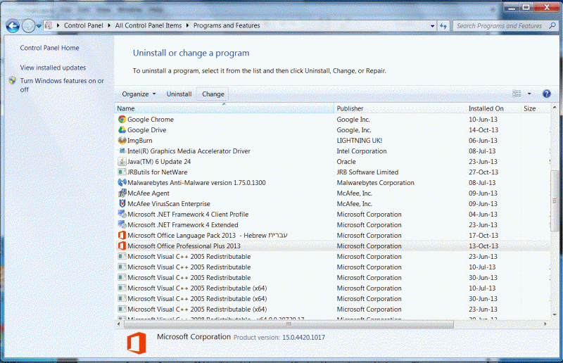 - לחצו על Microsoft Office Professional Plus 2013.